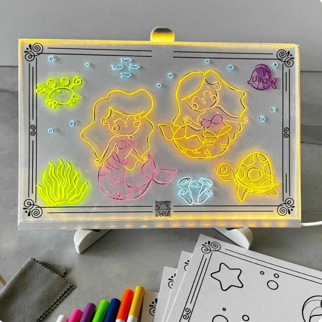 Watch their drawings light up with LED light, transforming every sketch into a true glowing masterpiece.
